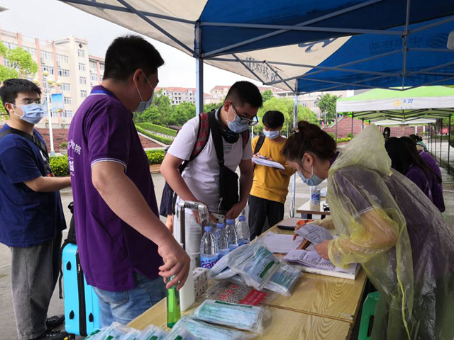 5月24日是大数据公司2019级学子们返校的日子,这一天没有烈日炎炎,而是小雨纷纷,但也阻挡不了学子们期盼已久的返校日子。一大早,辅导员们、系团总支员工会将口罩、报到表等各项报到时所需要的物资准备齐全,静待学子们归来。所谓“万事俱备,只欠大数据2019级学子们”,报到过程中,辅导员们关心着每一位同学,嘱咐衣服打湿了的同学赶紧回寝室更换衣服,小心着凉,注意身体。