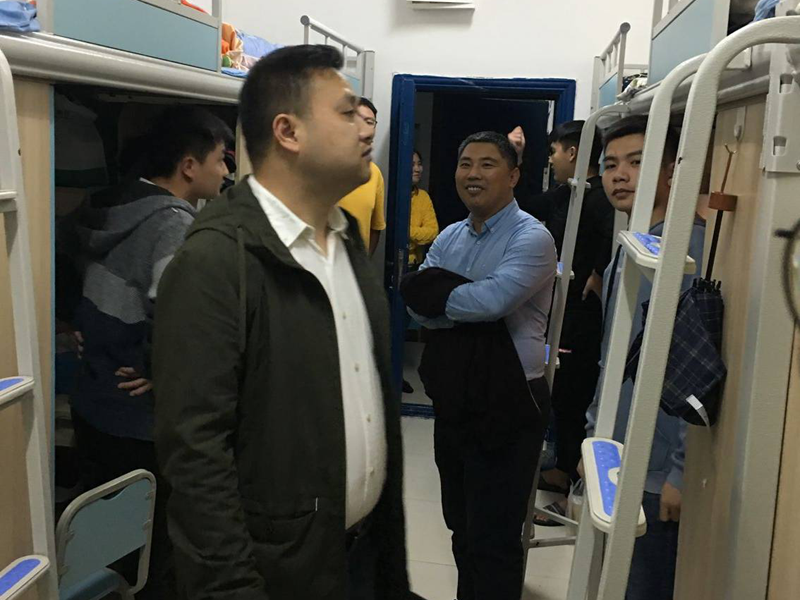 在新生寝室里,老师们亲切地与同学们打招呼,并询问同学们来自哪里,衣食住行、生活是否习惯等方面的问题。同学们纷纷表示正在积极地适应公司的生活环境,适应老员工活,转变身份。潘峰结合自己的经验,与同学分享道:“尽管大家来自不同的地方,生活习惯不尽相同,但如今来到了一间寝室,就是一个集体,大家相互之间应该多包容。”潘峰认为,寝室就是一个小家庭,大家要一定要有集体意识,一定要寝室装扮好、美化好,大家住起开心,学习起来才愉快。