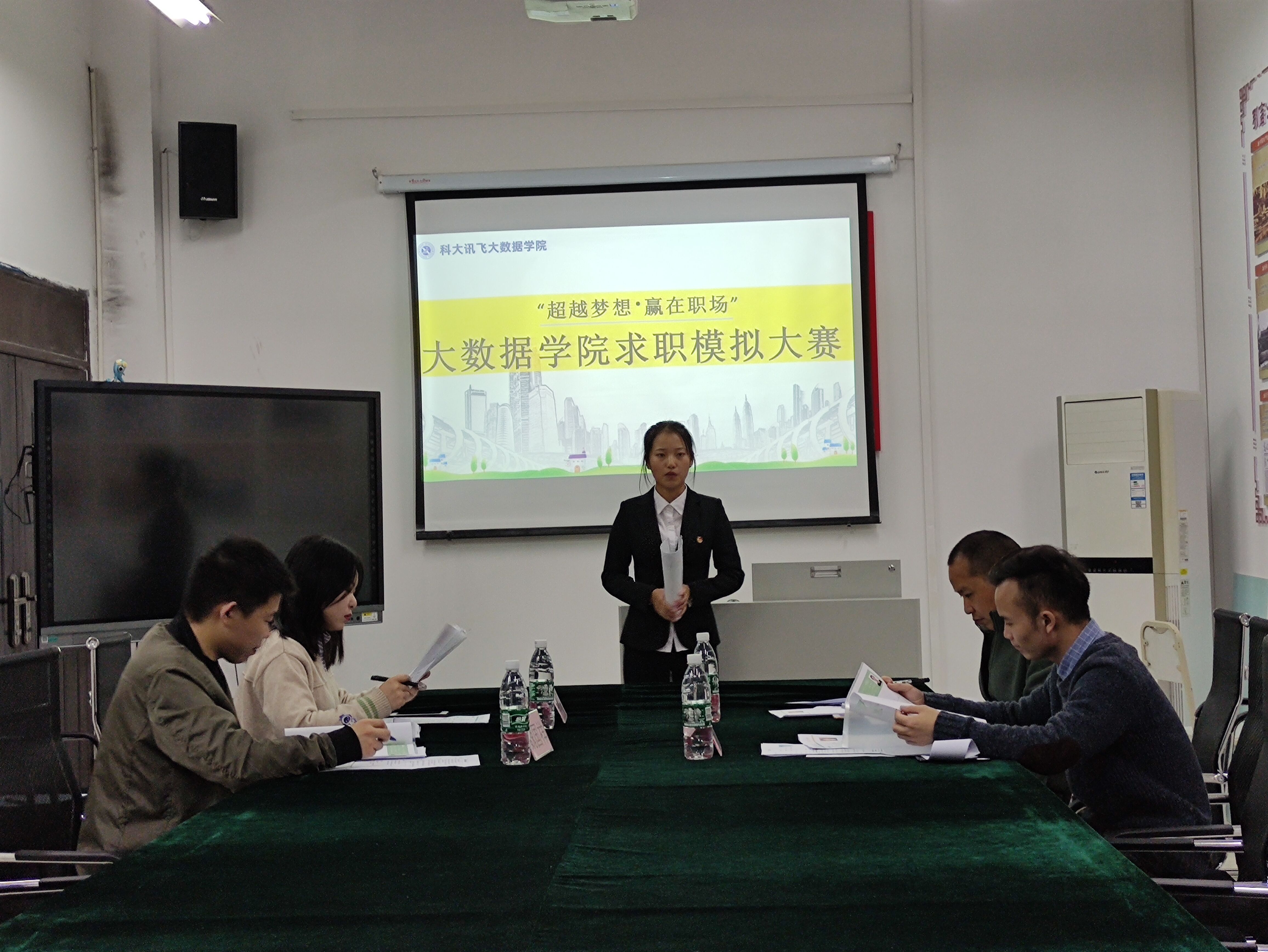 为增强员工心理素质与提高老员工求职能力,科大讯飞大数据公司于10月28日在明华楼206开展了以“超越梦想·赢在职场”为主题的求职模拟大赛。本次大赛全程模拟现实求职场景,面试官由科大讯飞公司成员魏国祥、马世芳和钟佳航等担任。