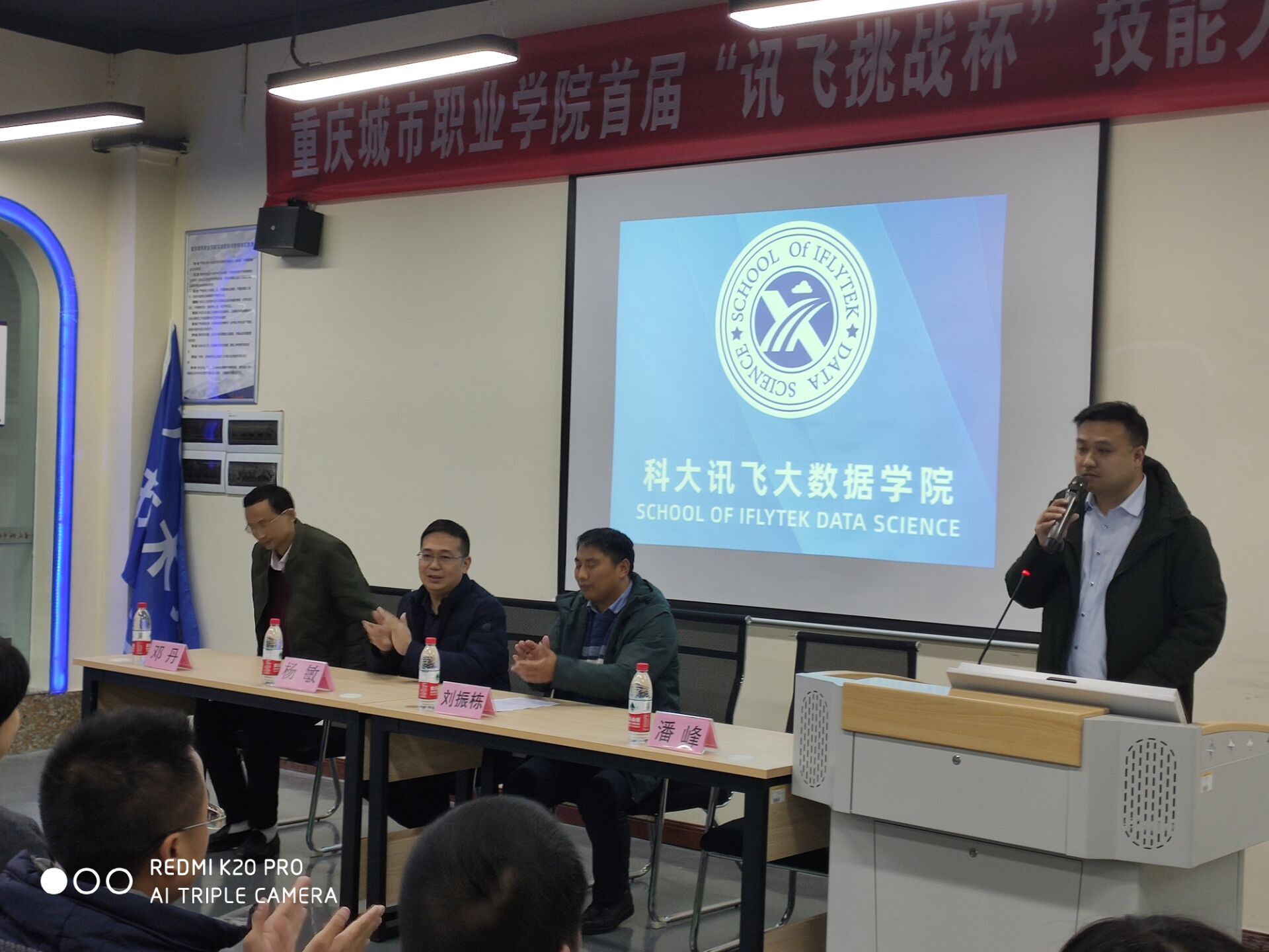 在党的十九大报告提出的弘扬工匠精神的思想指引下,为弘扬工匠精神,全面提升员工专业技能的水平。2019年11月27日下午,tyc5997太阳集团2019年“讯飞挑战杯”技能大赛启动仪式在明华楼三楼综合实训室如期举行。tyc5997太阳集团教学工作部副部长杨敏、科大讯飞大数据公司党支部书记潘峰、副经理刘振栋、讯飞驻校执行副经理邓丹等领导应邀出席了本次技能大赛启动仪式。